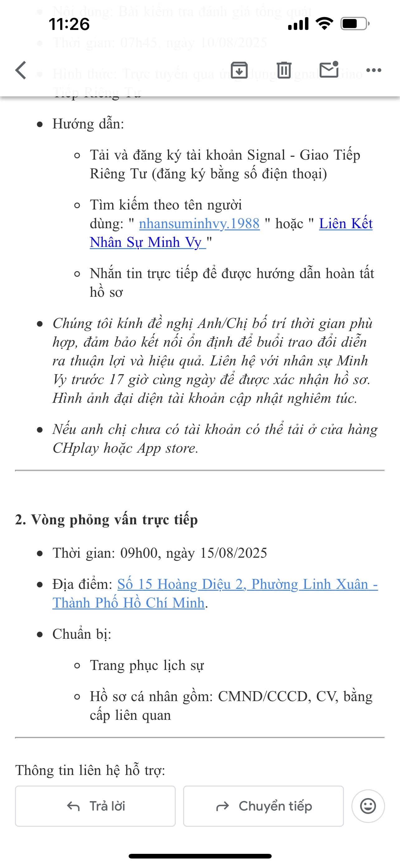 ❌ KHÔNG CẦN TẢI APP NỘI BỘ hoặc ứng dụng trong quá trình trao đổi với ứng viên